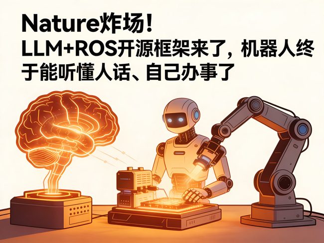 Nature炸场!LLM+ROS开源框架来了,机器人终于能听懂人话、自己办事了 新闻资讯赤霄2026年4月3日评论> 发表期刊:Nature Machine Intelligence(自然·机器智能) > 核心价…