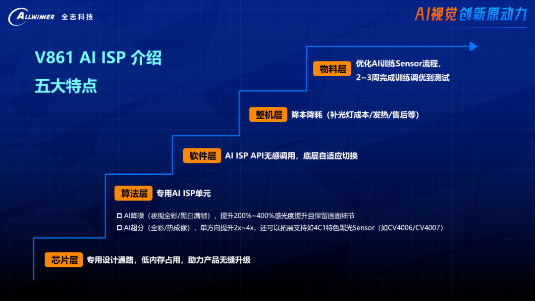 以运力、算力双维减耗为核心,通过异构计算架构与AI – ISP硬件单元深度协同,在保证高性能的同时优化系统资源消耗,形成低功耗解决方案,推动端侧AI视觉向更高效、实用方向发展。
