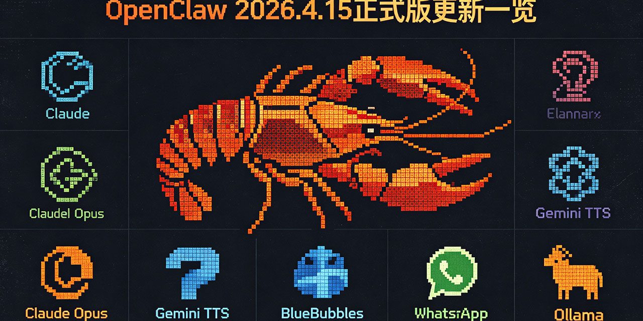 版本说明:本次为4.15系列正式稳定版,基于v2026.4.15-beta.1和beta.2迭代完成,在完整保留测试版所有核心功能的基础上,修复了30+项遗留问题,完成Claude Opus 4.7全链路适配、Google Gemini TTS原生集成、梦境存储体系重构,是OpenClaw 2026年4月系列的最终生产级版本,兼容性、稳定性与安全性均达到生产部署标准,推荐所有用户升级至该版本。