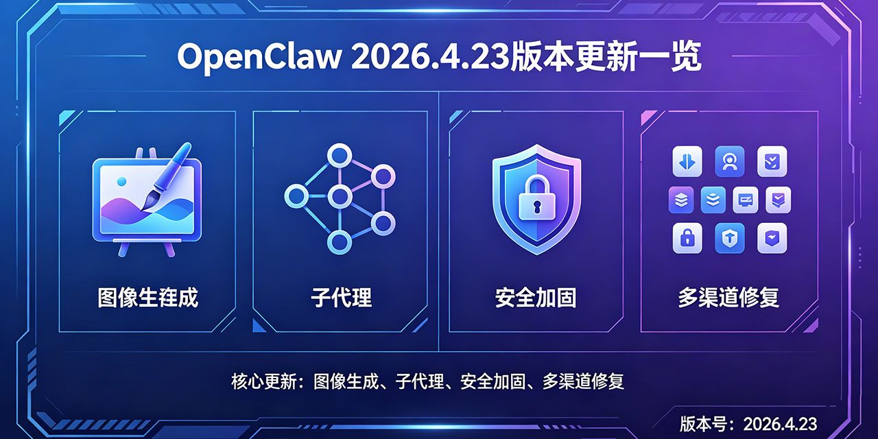 本次OpenClaw v2026.4.23版本作为4月收官之作,重点围绕五大核心方向实现全维度优化:补齐图像生成全链路能力,实现主流厂商图像生成接口原生接入与免密钥调用;升级子代理架构,新增上下文分叉机制,兼顾数据隔离与资源复用;优化本地记忆引擎,支持轻量化配置适配低配置设备;全域收紧安全策略,从配置权限、密钥管理、设备访问、渠道防护等多维度加固安全;批量修复多渠道历史顽疾,优化部署兼容性与交互体验,进一步完善企业私有化部署适配能力,确保系统长期稳定运行。