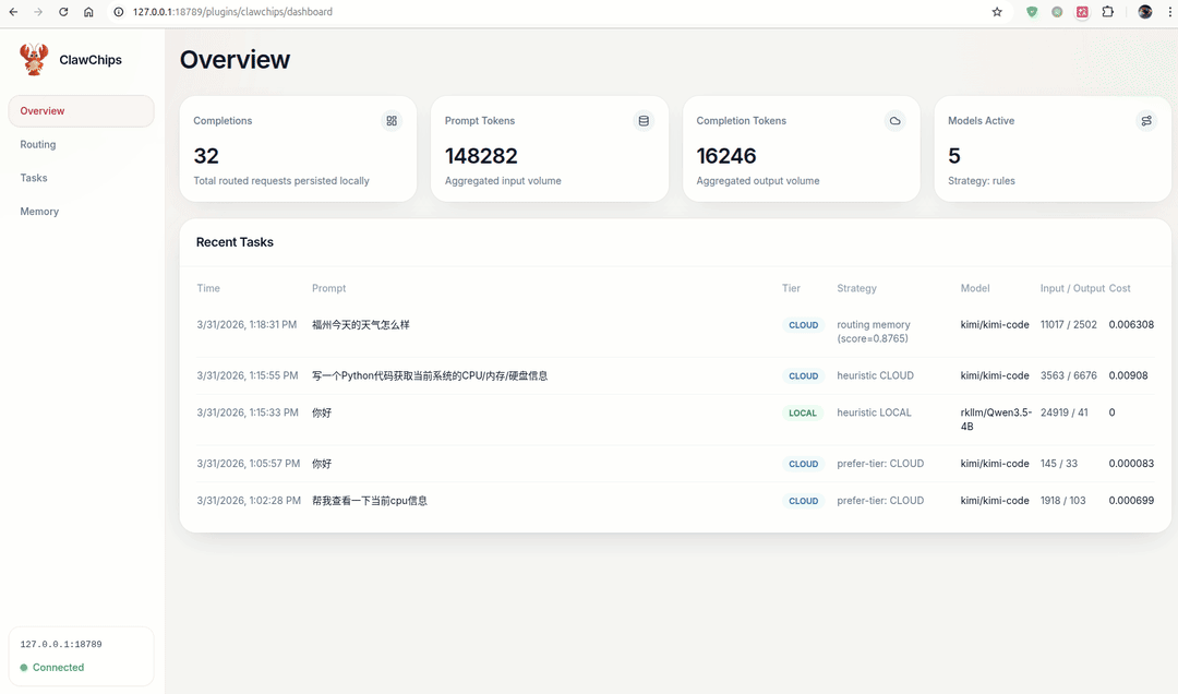 在端侧原生架构方面,ClawChips 搭载自研本地智能路由机制,可节省 40% 云端模型消耗,实现「本地推理零成本,云端调用更高效」。同时,它已完成端侧 4B 大模型深度优化,结合 RKNN3 SDK 量化能力,为龙虾 Agent 的自然语言理解、任务决策提供稳定算力支撑。