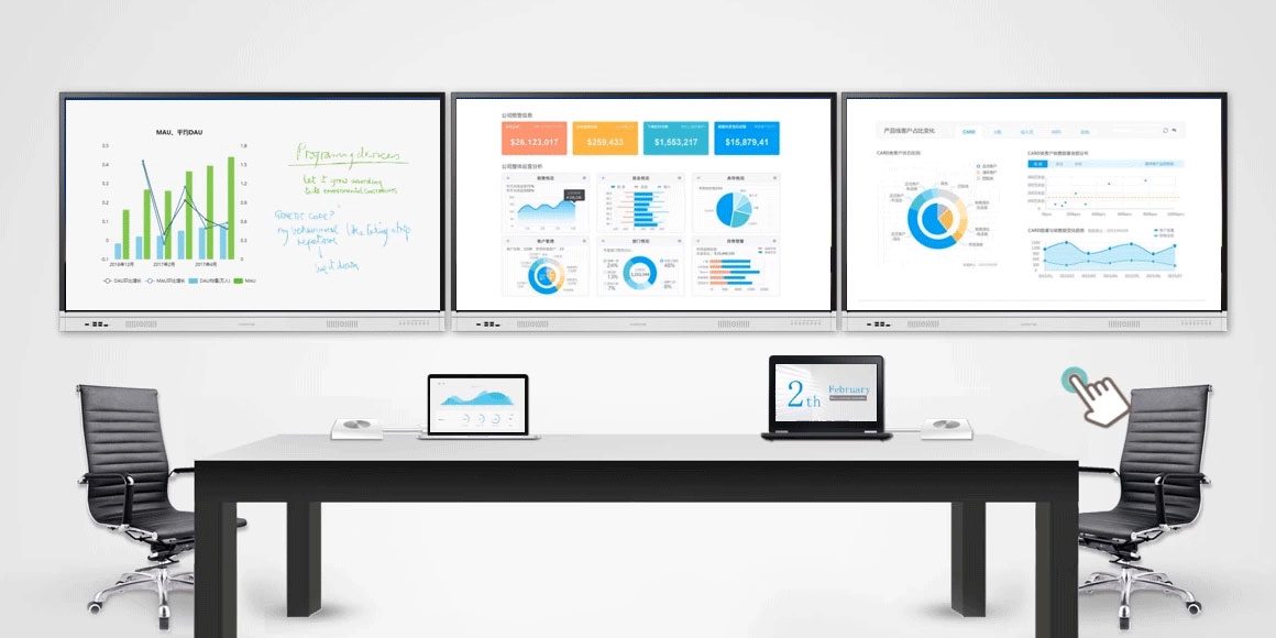 传统的单屏显示视频会议系统视野较差,且单屏显示对UI交互设计有很大的局限,单画面的单一,用户体验差。随着网络环境的改善和视频通讯的普及,多屏异显设备有着越来越大的市场需求。多屏异显的视频会议主机在中大型会议室、远程教学、远程会诊等领域有着强烈的市场需求,为此ScenSmart专门开发了RK3399方案平台的三屏异显视频会议主机。