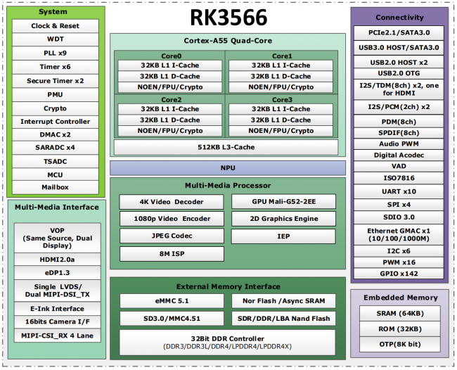 瑞芯微RK3566芯片是一款专为消费类行业应用打造的通用型SoC。CPU采用4核A55架构处理器,集成G52图…