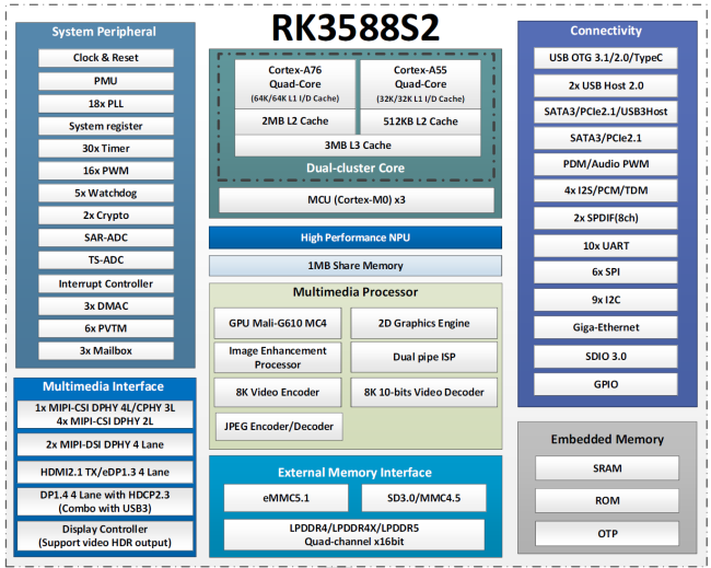 RK3588S2是瑞芯微旗下一款低功耗、高性能的通用型SoC处理器,集成了四核Cortex-A76和四核Cor…