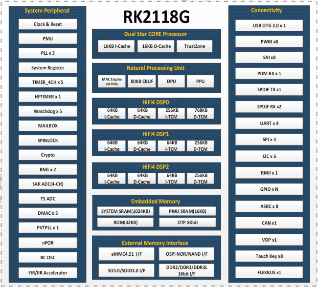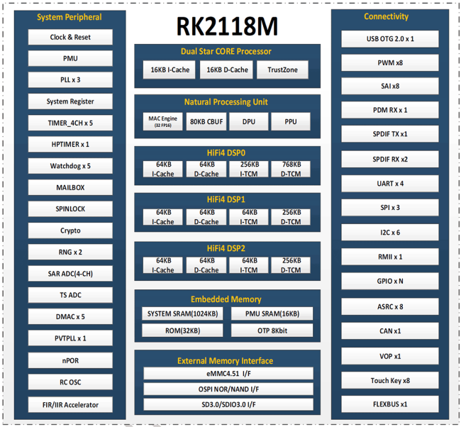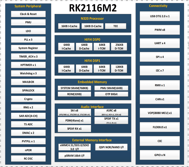 瑞芯微RK2116M2智能语音专用SoC处理器规格参数datasheet